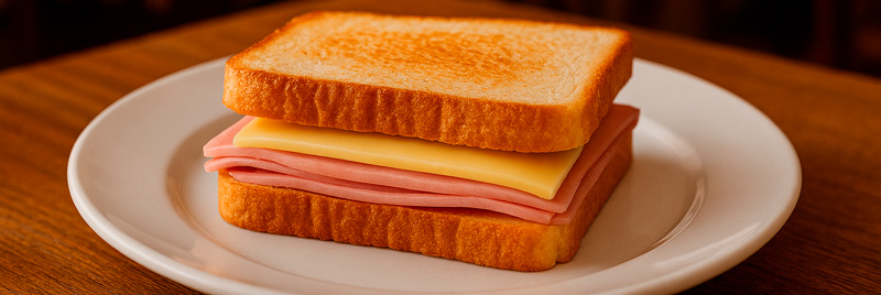 | Pan brioche, jamòn cocido, queso barra, salsa bechamel y huevo a la plancha. | |